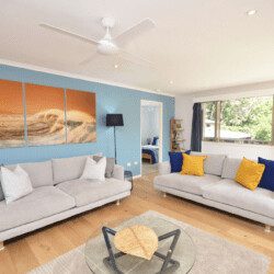 Enjoy a modern and stylish escape in "Happy Hours," a beautiful home that can accommodate up to 7 guests (6 adults max). Set in a peaceful cul-de-sac, this serene oasis is perfect for your next work vacation. Relax and rejuvenate any time of year with its stylish decor. The stunning Avoca Beach is just a short walk away, where you can enjoy the sun and clear waters. Take a stroll and explore the charming shops and boutiques along Avoca Beach for some shopping.