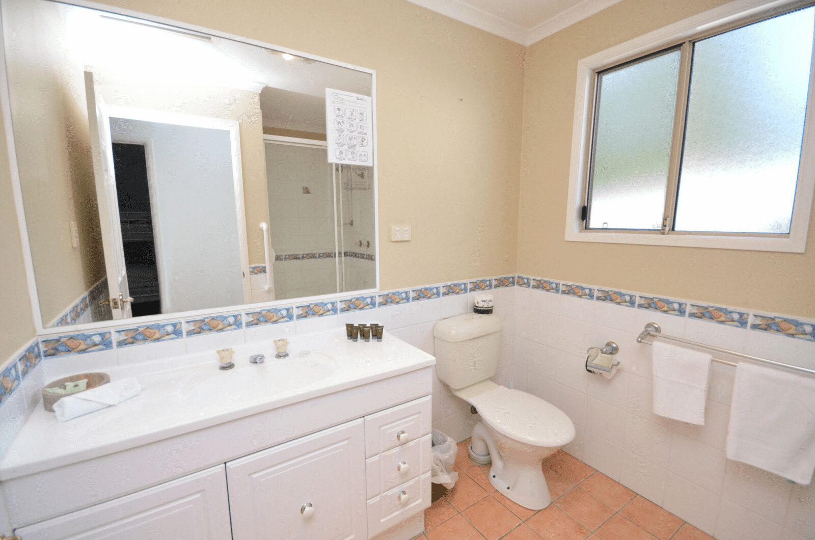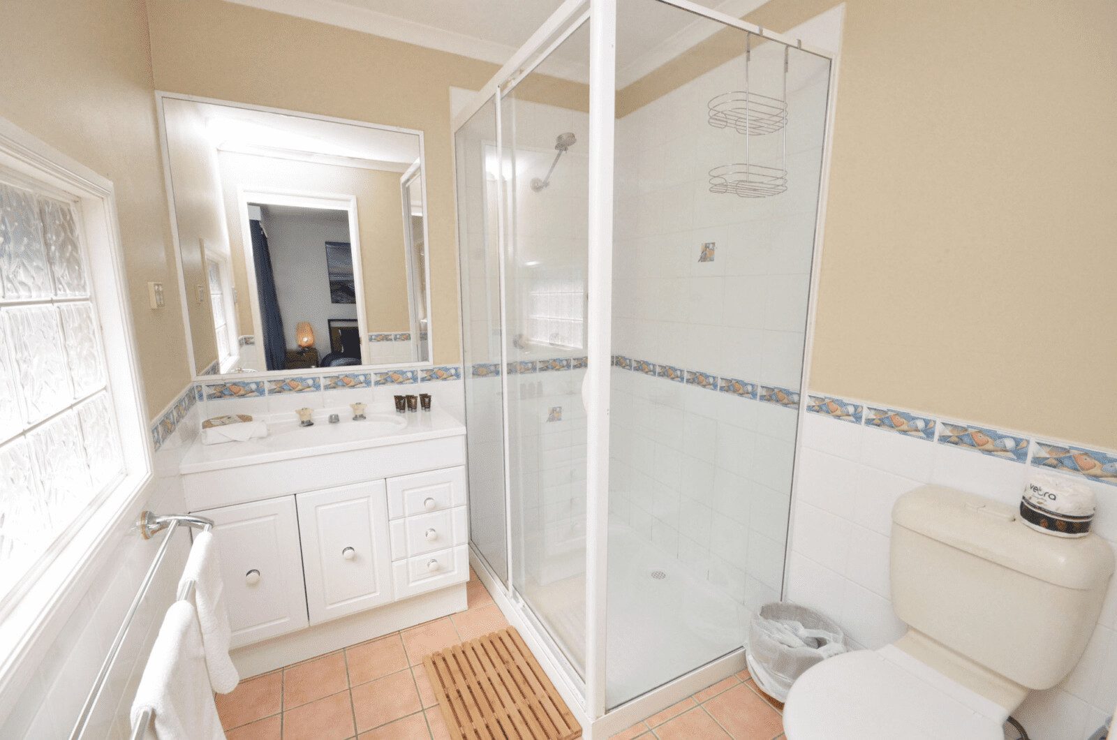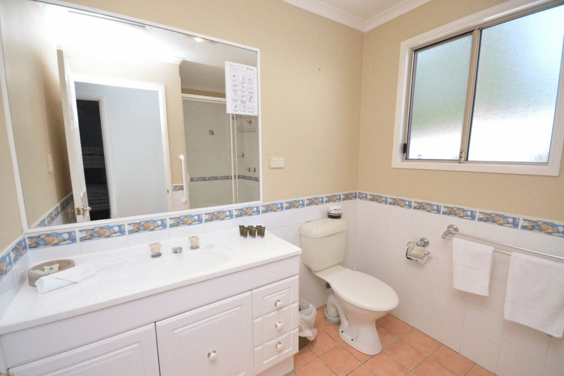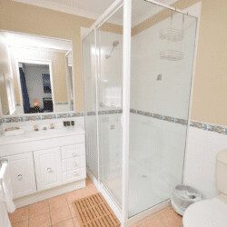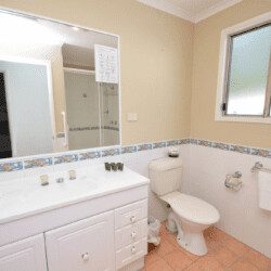 The house has two bathrooms. The ensuite has a shower, vanity, and WC, providing privacy and convenience for the occupants of the master bedroom, whilst the second bathroom is shared by the other two bedrooms featuring a shower, vanity, and WC.