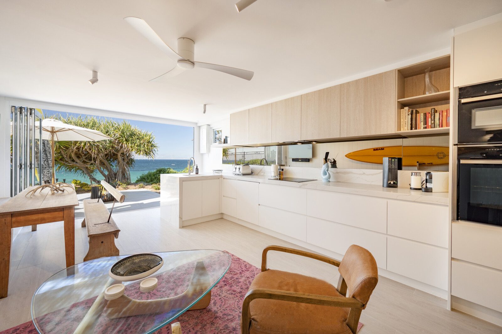 Unwind and enjoy the stunning ocean views from the inviting living area which seamlessly merges with the kitchen, creating an open and harmonious space where you can fully immerse yourself in the coastal ambiance. Relax in comfort as you take in the breathtaking vistas.
