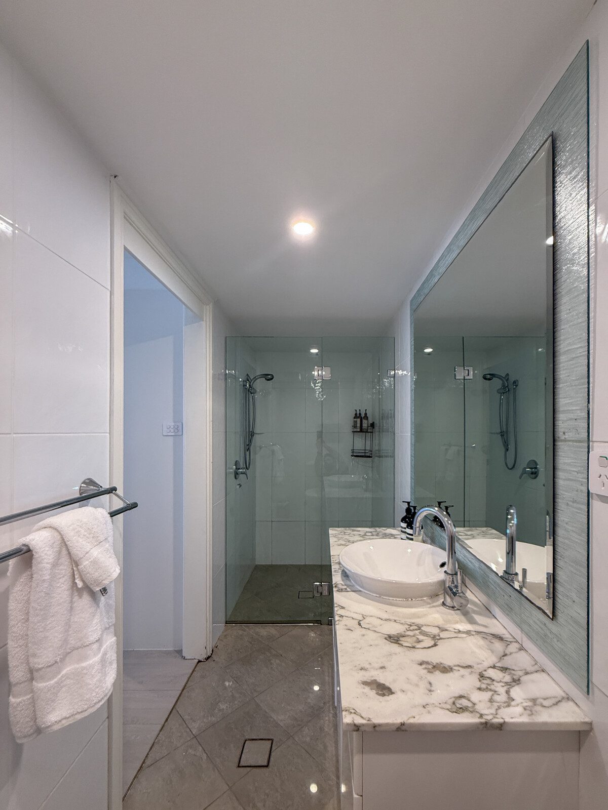 Nestled discreetly at the rear of the studio, the bathroom provides a tranquil retreat with its spacious shower, offering a rejuvenating and invigorating experience. Completing the setup are a vanity and WC, ensuring both functionality and comfort.