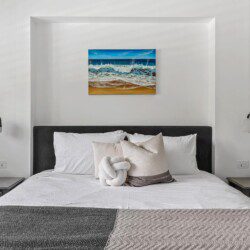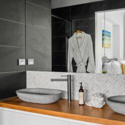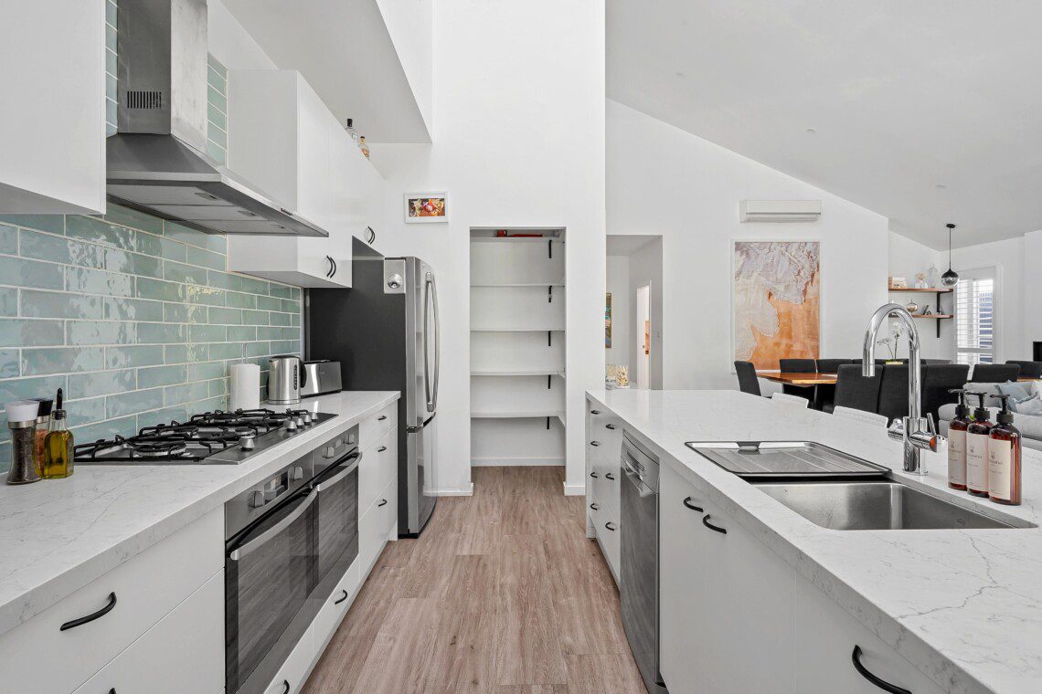 The designer kitchen brings it all together with effortless practicality and sleek style. A stone island invites conversation while twin ovens, a gas cooktop and premium appliances make cooking – whether it’s pancakes at sunrise or fresh seafood at dusk – an absolute pleasure. With everything within easy reach and ample storage throughout, hosting feels seamless.