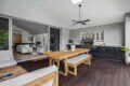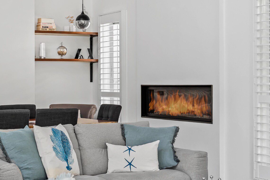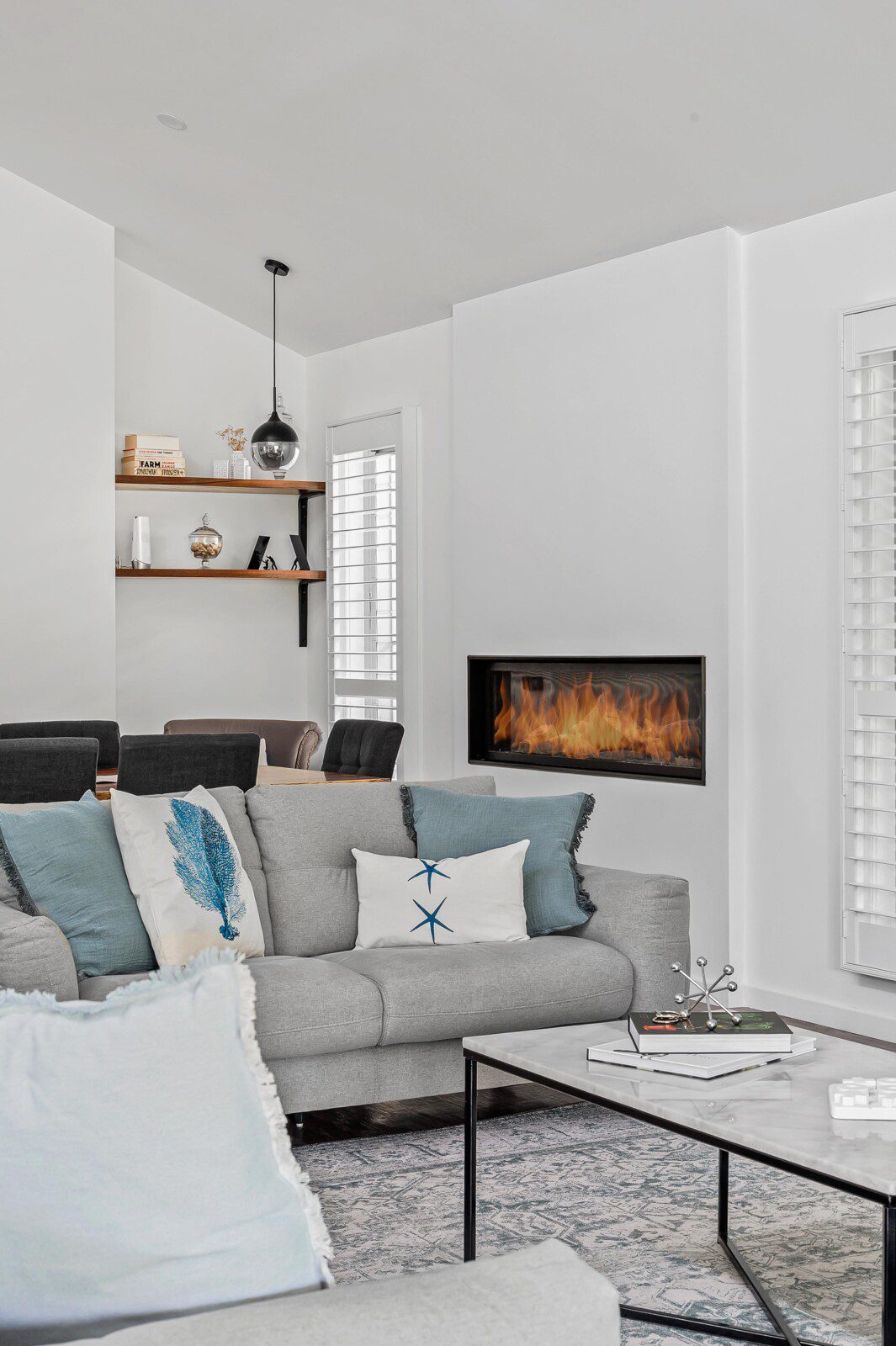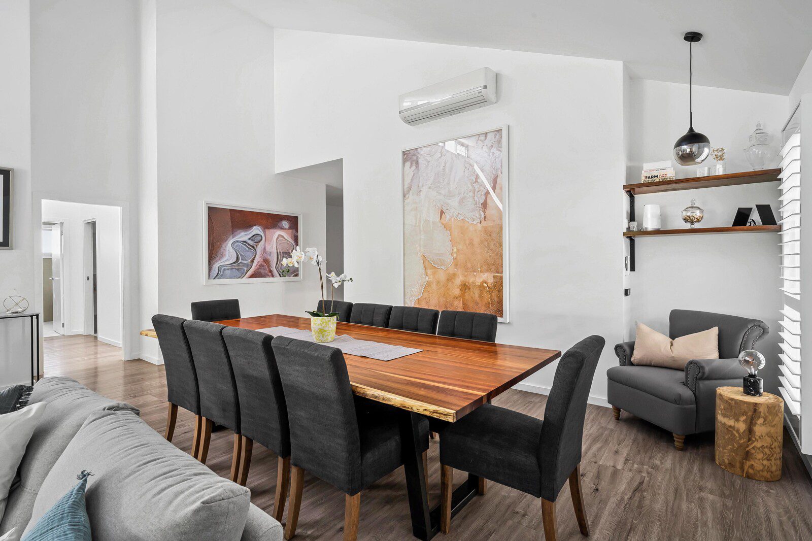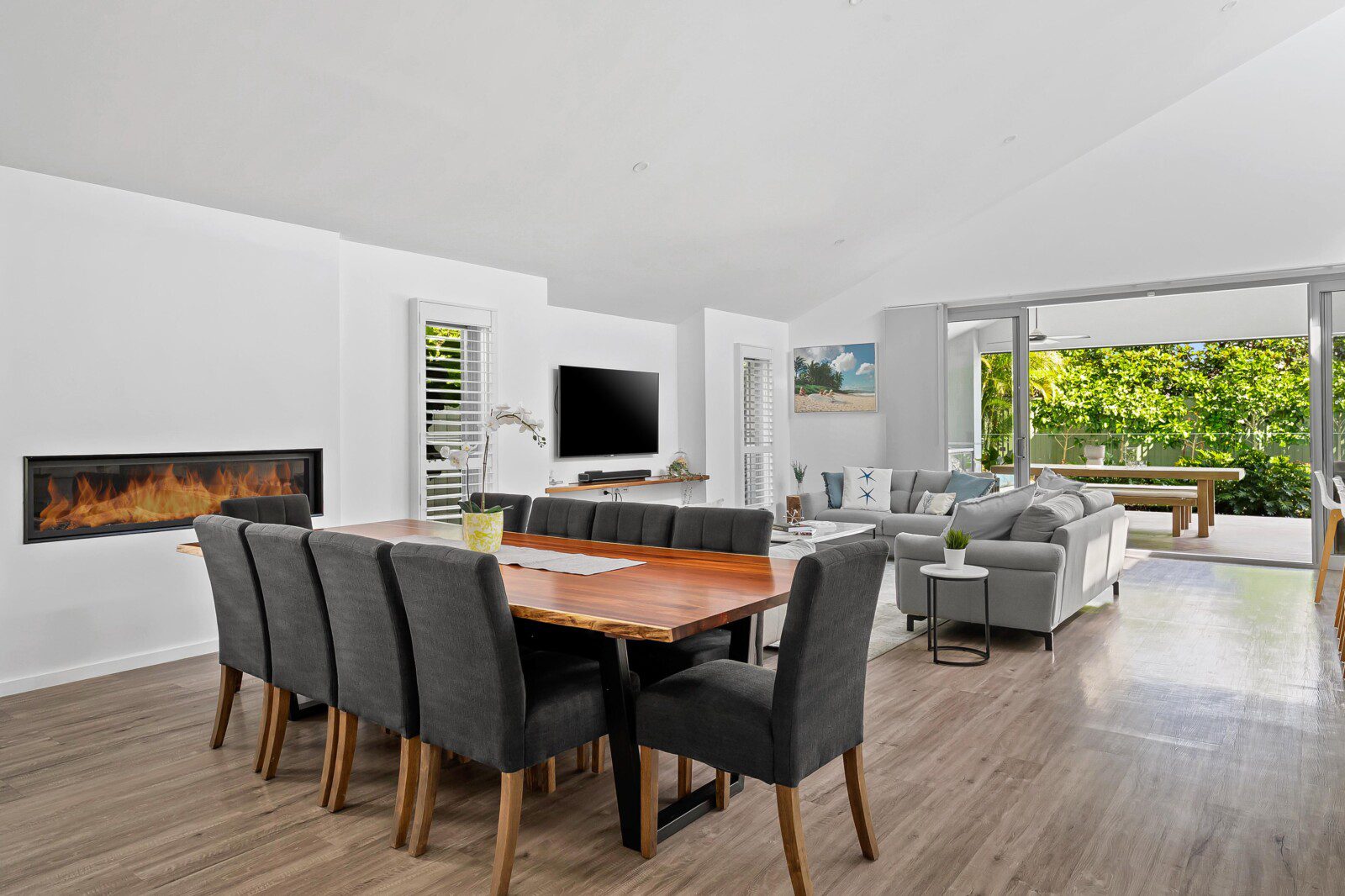 Just beyond, the feature gas fireplace anchors the dining space, setting the tone for cosy shared meals and evening ambience. The generous dining table becomes the hub for family feasts, spirited game nights or quiet cups of coffee before the day begins.