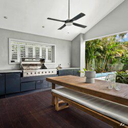 Large sliding doors dissolve the boundary between indoors and out, revealing a private alfresco haven designed for pure enjoyment. Fire up the built-in outdoor kitchen and BBQ for laid-back lunches that linger into the afternoon or gather under the evening sky as the deck comes alive with laughter and clinking glasses.