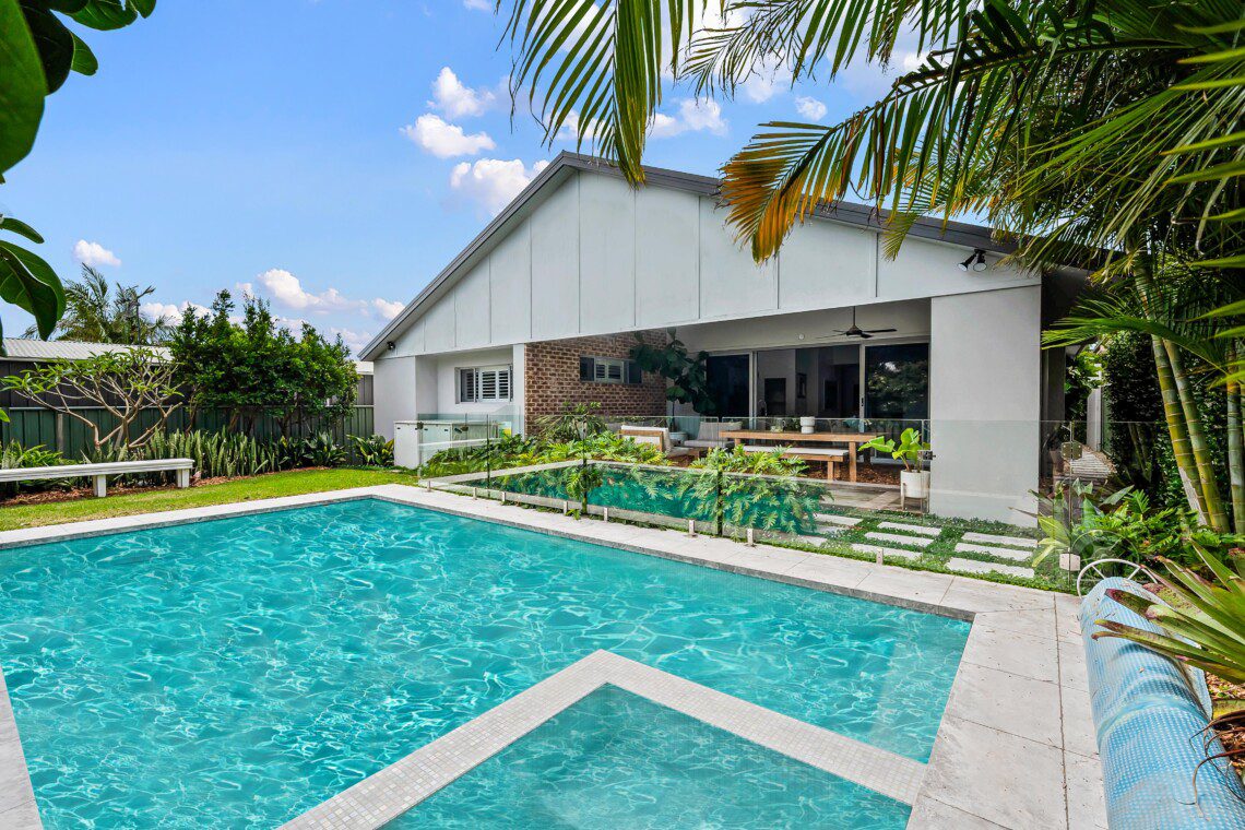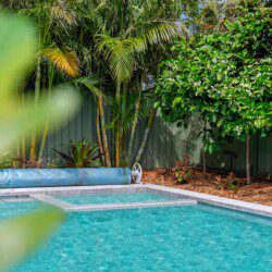The sparkling pool – enhanced with spa-style jets – invites morning dips, midday lounging or twilight swims, while the outdoor shower offers the perfect post-beach refresh.