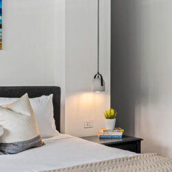 A private wing to one side houses two additional bedrooms, each offering tranquillity away from the main hub. These rooms share a sleek, contemporary bathroom and a tucked-away study nook — perfect for teens, visiting family, or those wanting a quiet corner to catch up on work or reading.