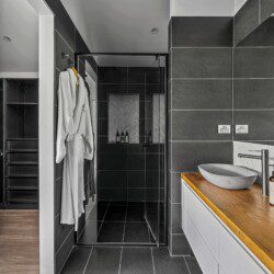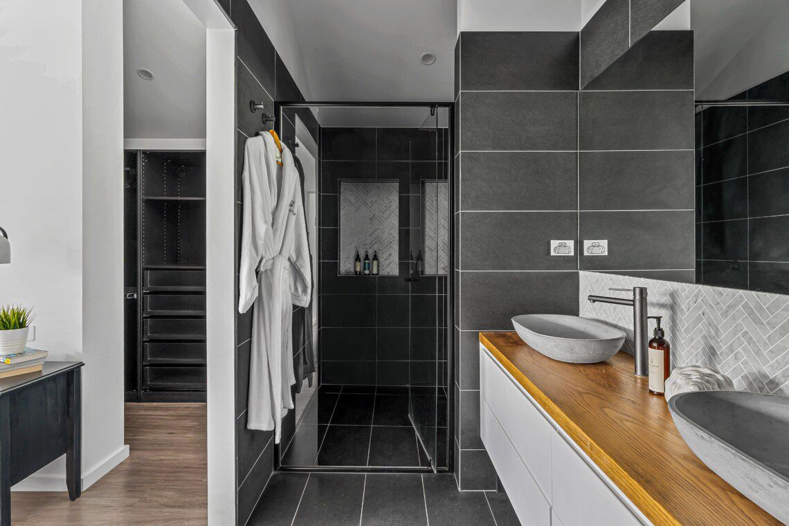 The master ensuite takes luxury to the next level with a spacious rainfall-style shower, a double vanity ideal for effortless morning routines, and a refined WC – all finished with high-end materials that evoke the feel of a boutique hotel.