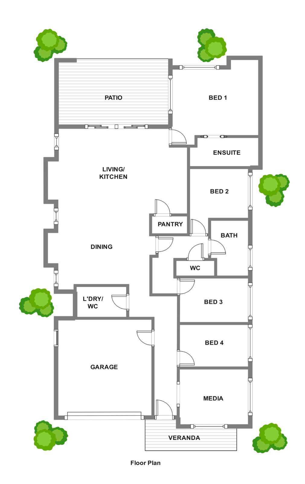 All on a single, effortless level, the home invites you to explore at your own pace. The journey begins at the entry with a welcoming media room for relaxed movie nights. Just down the hall, the first bedroom offers a peaceful haven with convenient access to a nearby laundry complete with vanity and WC, blending comfort and practicality.
