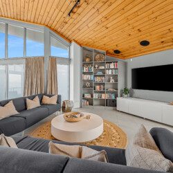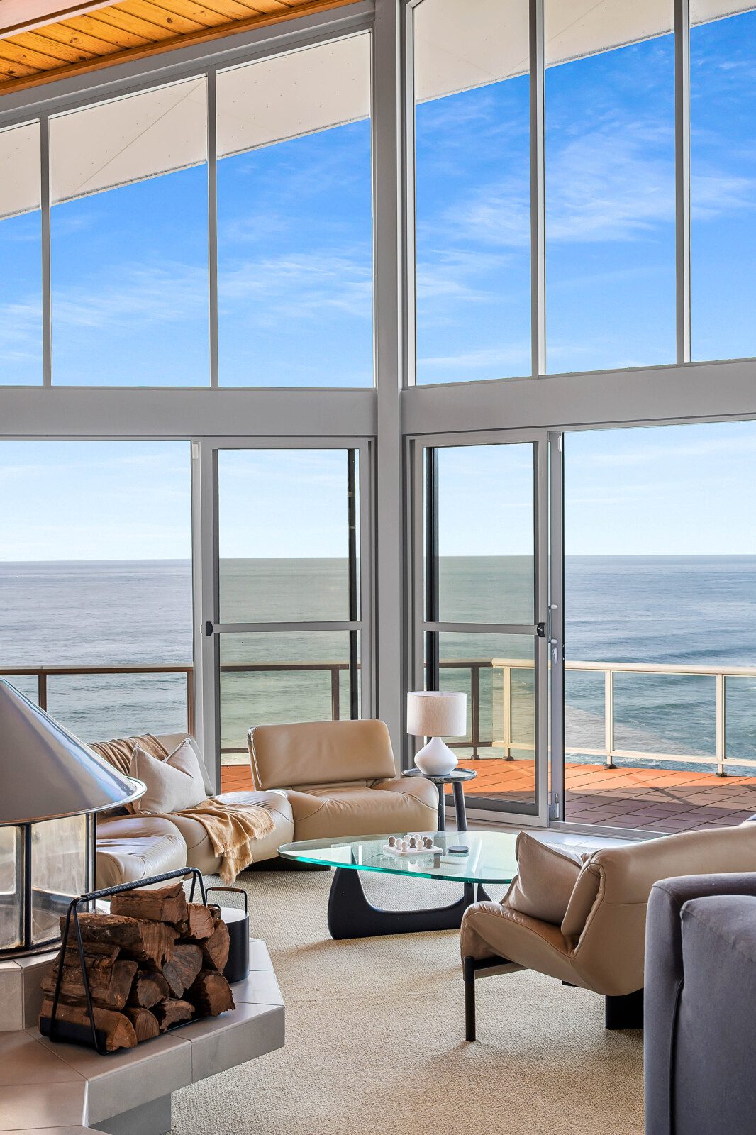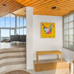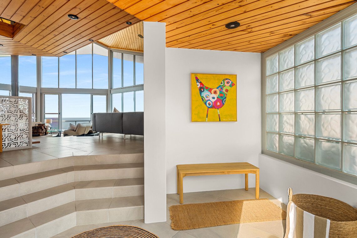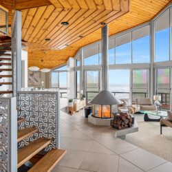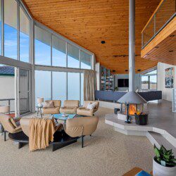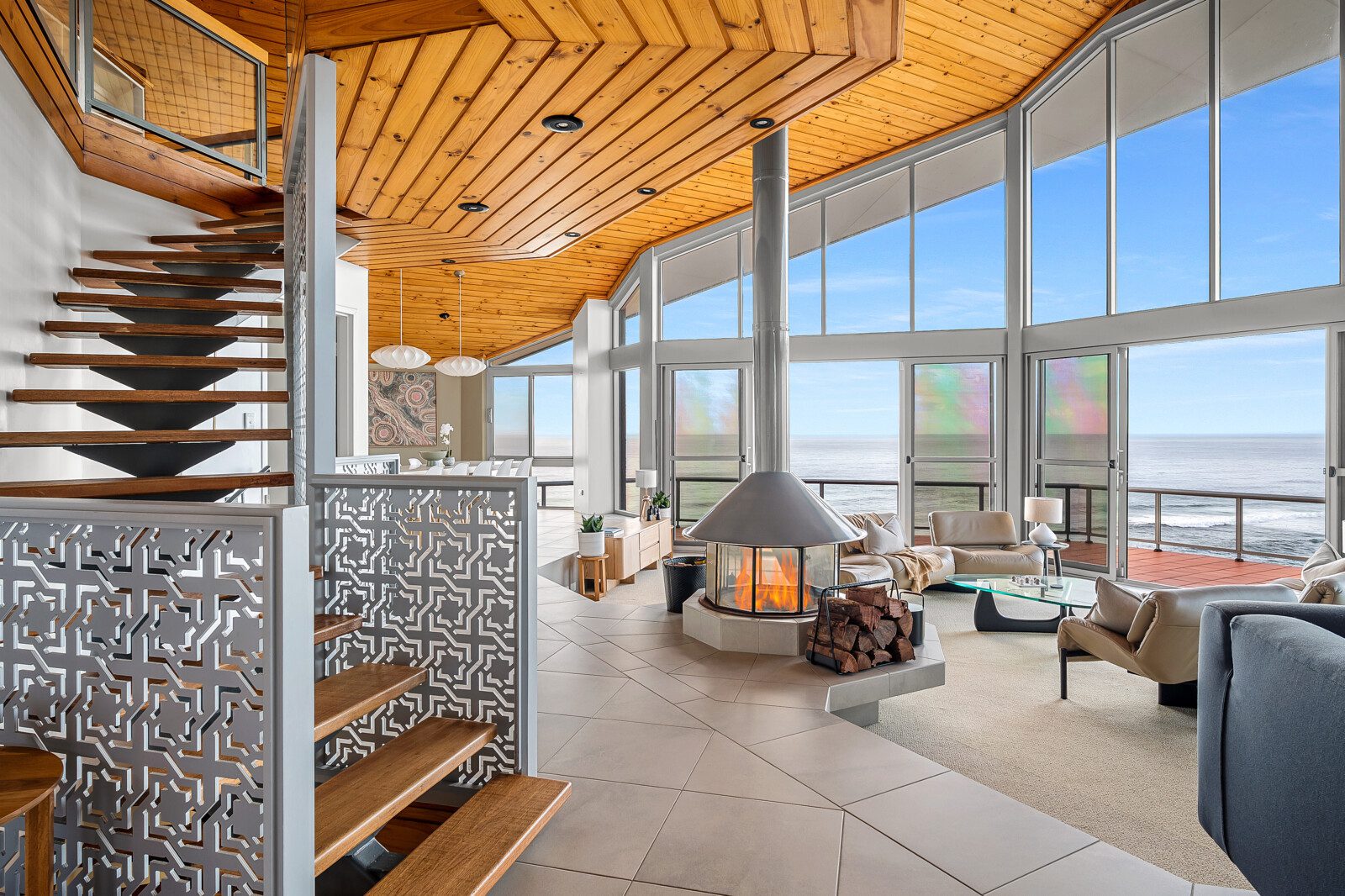 Step into a world where every detail plays its part in the symphony of luxury. The home’s striking octagonal layout orchestrates light, privacy and space, creating rooms that feel both expansive and intimate. In the sunken lounge, a glass-walled wood fireplace provides warmth and atmosphere while the ocean beyond sets the perfect tempo.