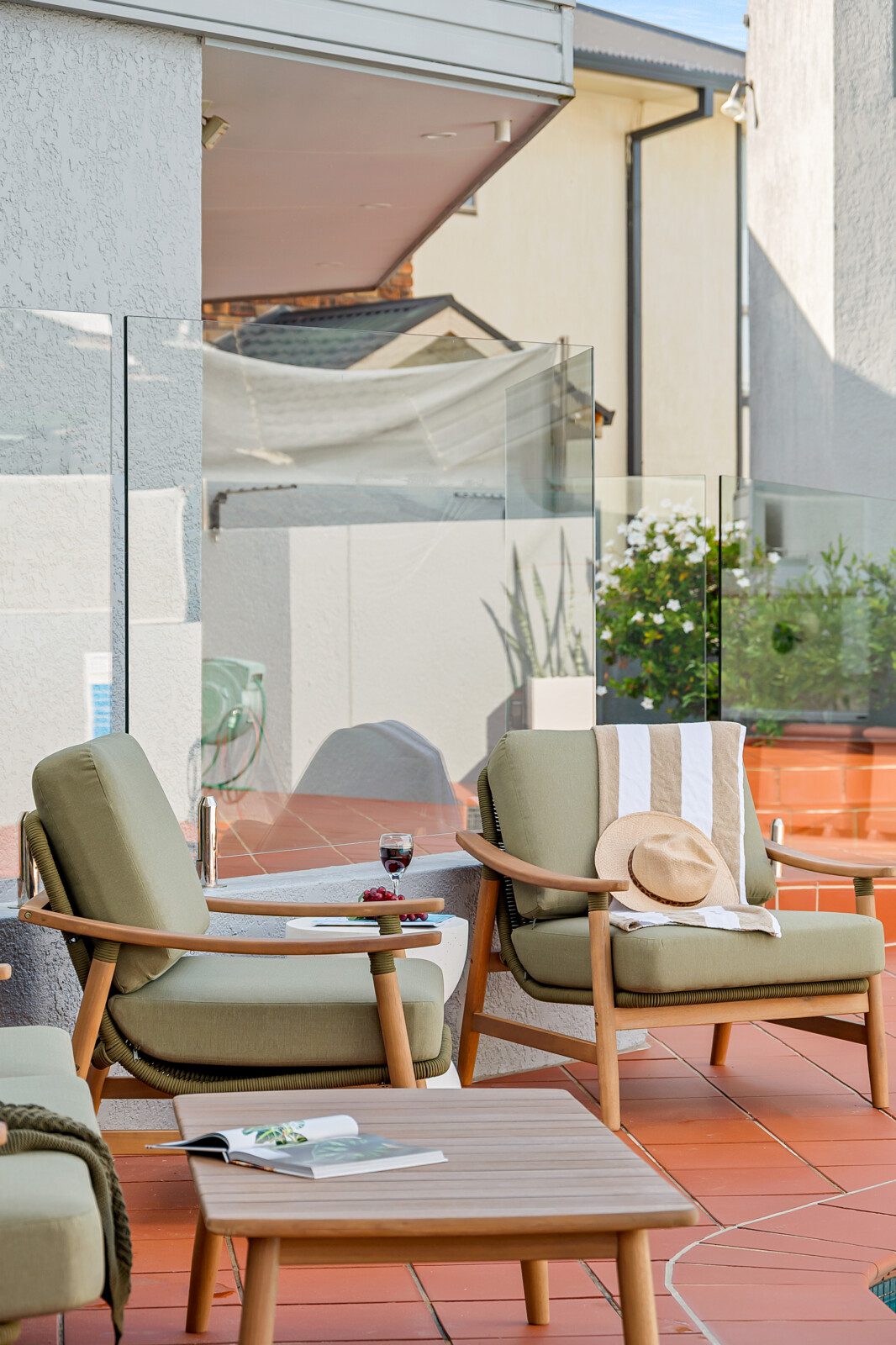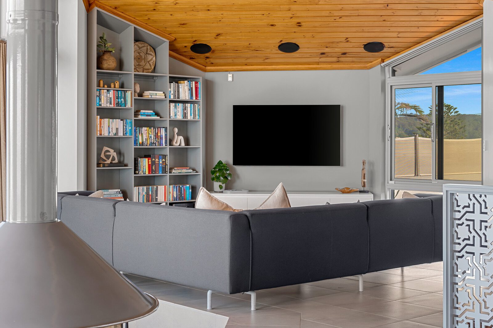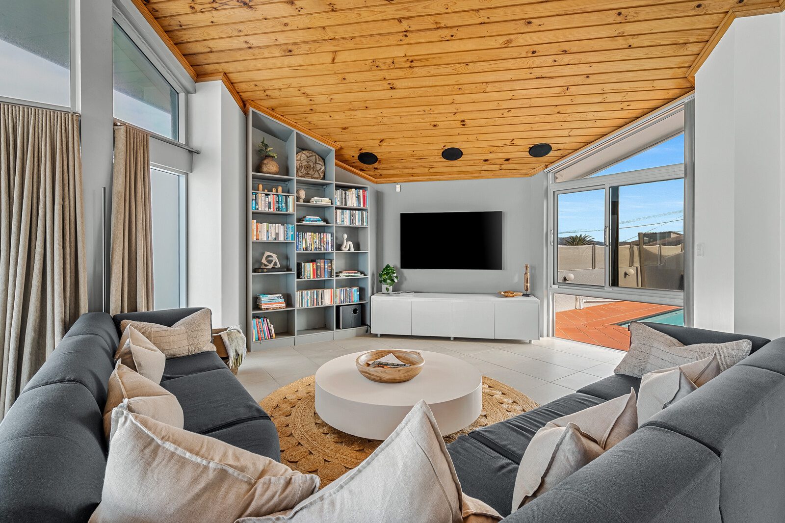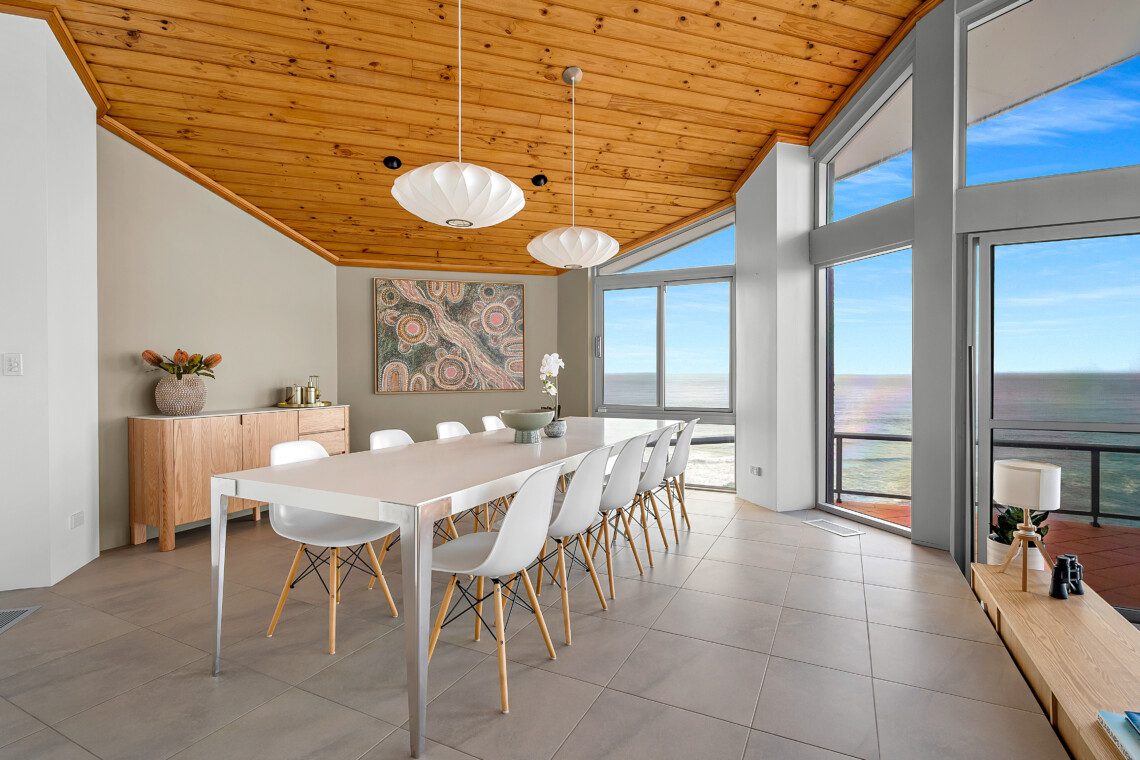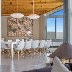Curl up on the lounge with a glass of wine while the ocean whispers beyond the glass walls or gather in the TV lounge under soft, natural light that dances across the room.
