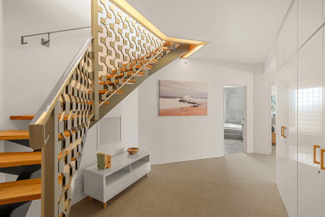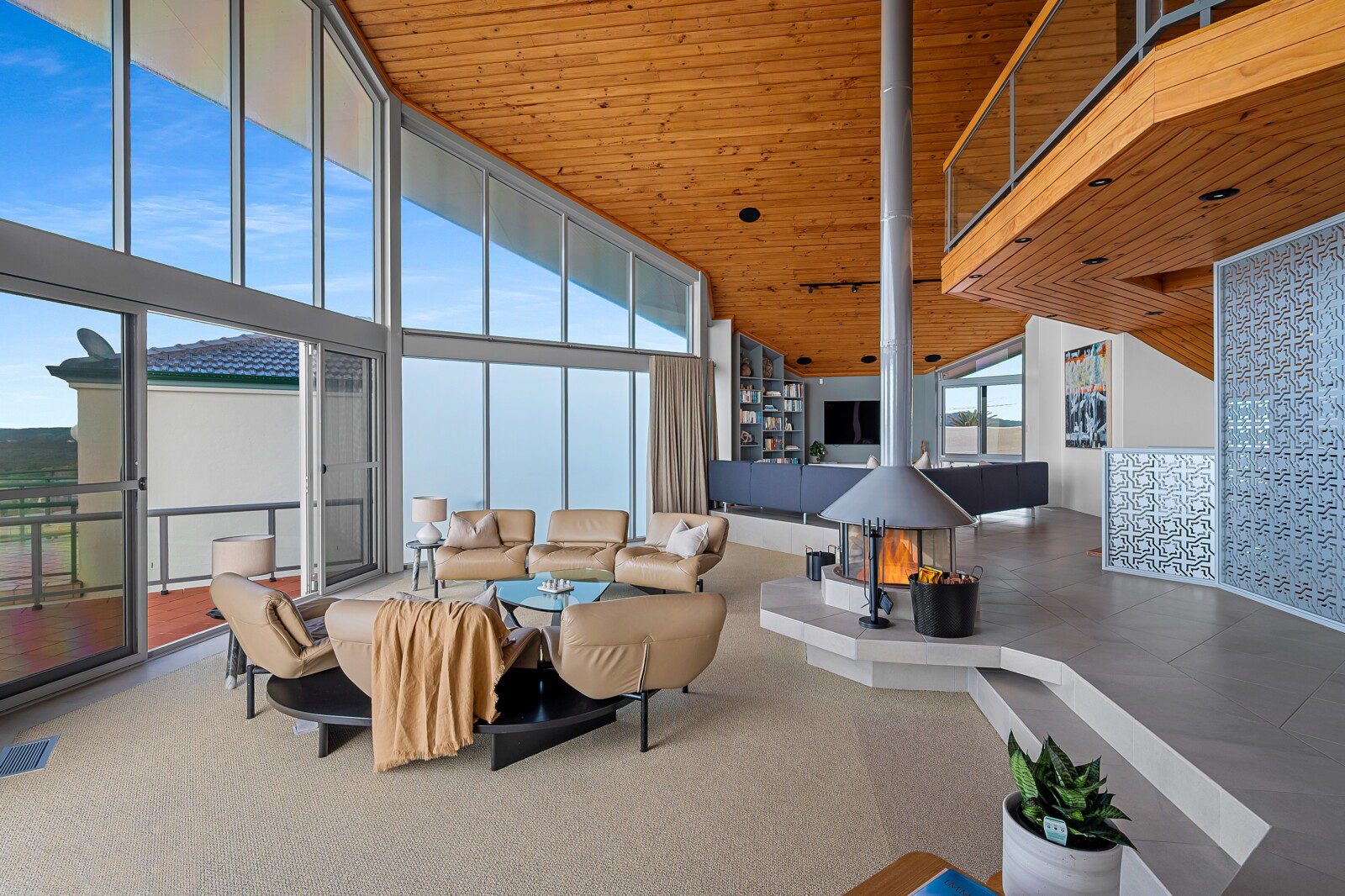 From the mezzanine, the entire living space feels expansive yet intimate, with ocean panoramas unfolding at every turn.