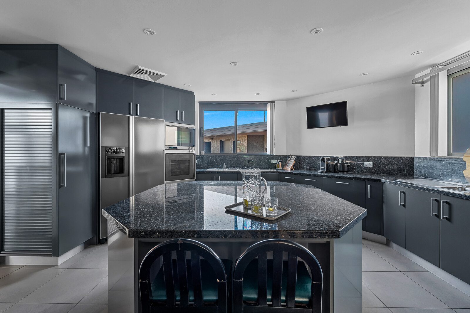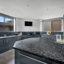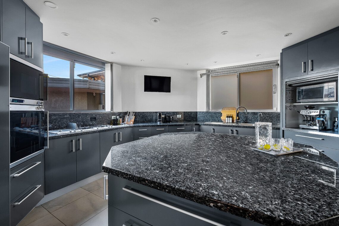 The heart of the home is a chef’s haven, where a commercial-grade kitchen with granite and stainless-steel finishes, premium appliances and cleverly designed storage flows effortlessly into an adjoining dining area, complete with a generous table that comfortably seats all guests.